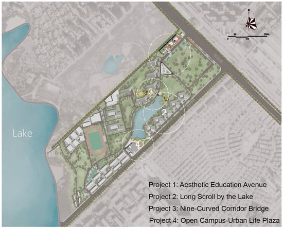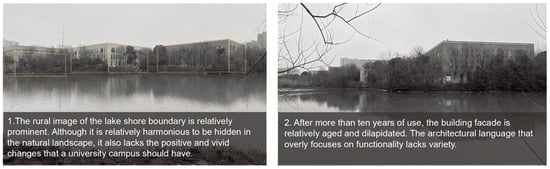 | “Mountains, forests, waterfronts, and natural wildness” reflects the campus’s exceptional natural ecological environment. | (1) The campus’s natural imagery and built elements are not well integrated, and the local area has a strong sense of desolation. (2) The contrast between the texture of the campus and the surrounding city is obvious. As a campus deeply integrated into the city, it overemphasizes the natural imagery and ignores the urbanity. | Shaping the lakeside landscape. |