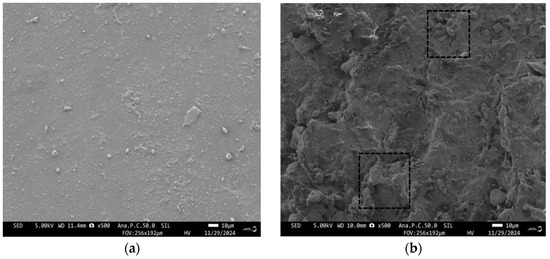 In this paper, the JEOL scanning electron microscope (IT800) was used to scan and analyze the morphology of the polyurethane material test block before and after compression (as shown in Figure 8). In the initial state, the surface of the polyurethane test block showed a relatively uniform and flat structure, and its internal pores were evenly distributed, showing good material compactness and consistency. However, after a certain amount of pressure, there are obvious tensile traces and raised areas on the surface of the test block, which indicates that the polyurethane material has a tensile expansion effect in the process of compression, but it can be seen that there are no large cracks, showing high strength and toughness. In the future, we will continue to study this phenomenon in depth, and continue to provide a scientific basis for the performance optimization and application expansion of polyurethane materials.