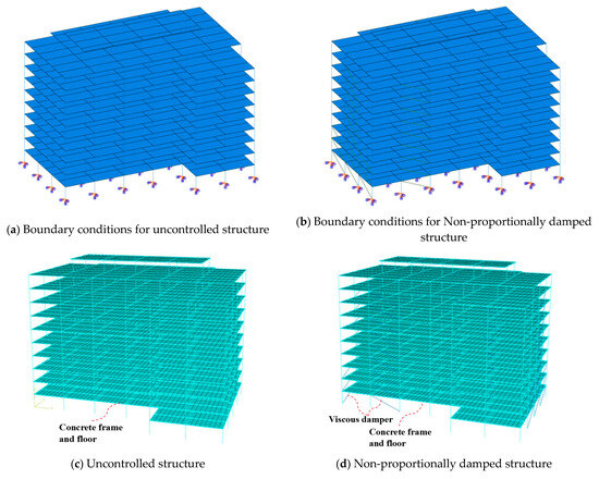 For a structure equipped with viscous dampers (viscous dampers and supports), the motion equations of the structure can be written as follows [38]: