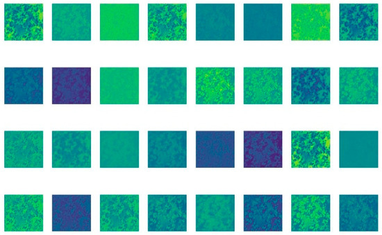 The feature map refers to the image produced after applying convolution operations to the input image. It primarily contains features such as texture, shape, and edges of the image. The feature maps generated by each convolutional layer become increasingly abstract as the depth of the network increases, aiding the model in extracting higher-level features from the image. To better understand the working principle of the model, the feature maps generated during the training process of Inception v3 were visualized, as shown in Figure 17.
