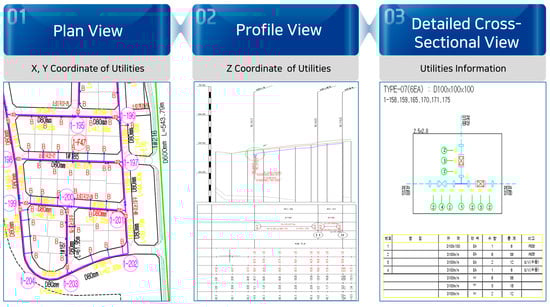 First, we propose a standardized format that integrates 3D coordinates (X, Y, Z) with the shape and attribute information to more clearly represent the location, shape, and attributes of underground utilities. This format maintains consistency in the drawings and allows for the intuitive and accurate representation of spatial data for various utilities.