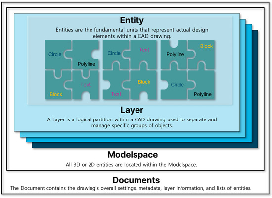 Lee, J.; Kim, Y.; Moon, I.-Y. Standardization of CAD Drawing Formats and GeoJSON-Based Processing for 3D Spatial Data Extraction of Underground Utilities. Buildings 2024, 14, 3980. https://doi.org/10.3390/buildings14123980