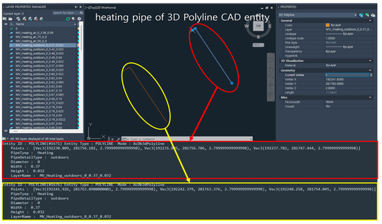 Figure 10. Heating pipelines expressed as a 3D polyline entity.
