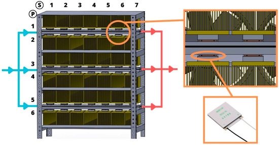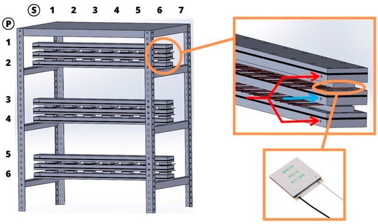 The number of TEMs and their arrangement (series and parallel) in the TeHPs directly affect the results, so the configuration that optimizes the performance of each TeHP must be selected. In Figure 3 and Figure 4, a design with 7 TEMs in series and 6 units in parallel can be seen as an example of a possible arrangement.
