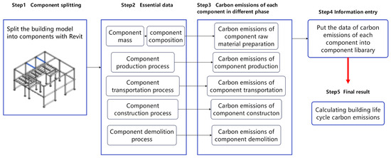 In response to these challenges, this study adopts the component design method to design a case study building and calculate its life-cycle carbon emissions. First, the basic principles and design flow of the component design method are introduced, followed by the definition of the boundaries and methodology for carbon emission calculation during the materialization phase in Section 2. Next, in Section 3, the carbon emission calculation for a case study building, referred to as the “C-house”, is performed using the component design method. Finally, Section 4 presents a comparison between the carbon emissions results obtained using the component design method and those derived from the “quota method”.