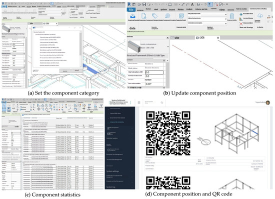 Thirdly, using the “View the Drawing” function module, the spatial position and QR code of the selected component in the building can be displayed. By tracking the QR code of the component, the BIM-technology-based management and monitoring of the whole process (design, production, construction, and dismantling) of the building components can be realized, thus greatly improving the on-site work efficiency.