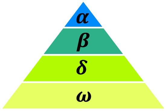 The Grey Wolf Optimizer (GWO), proposed by the Australian researcher Mirjalili [], imitates the hunting and predation actions of grey wolves. The wolves are classified into four tiers according to their population status, arranged in a pyramid structure where the numbers decline progressively from one layer to the next, as seen in Figure 3 [].