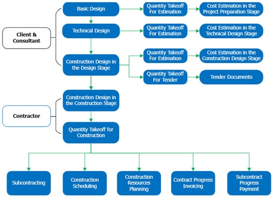 - Fırat, C.E.; Arditi, D.; Hamalainen, J.; Stenstrand, J.; Kiras, J. Quantity Take-Off in Model-Based Systems. 2010. Available online: https://itc.scix.net/pdfs/w78-2010-112.pdf (accessed on 21 December 2020).