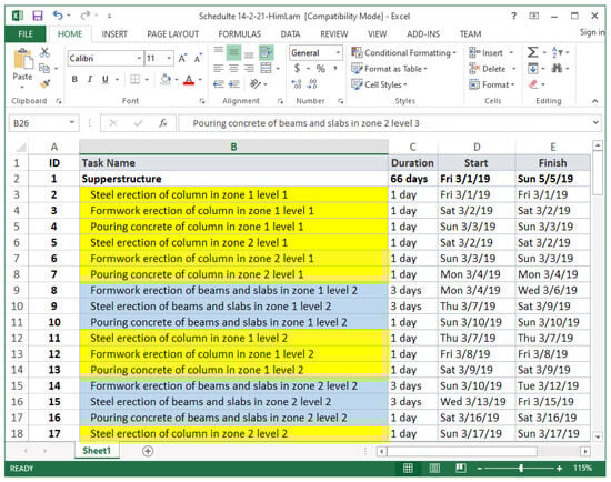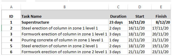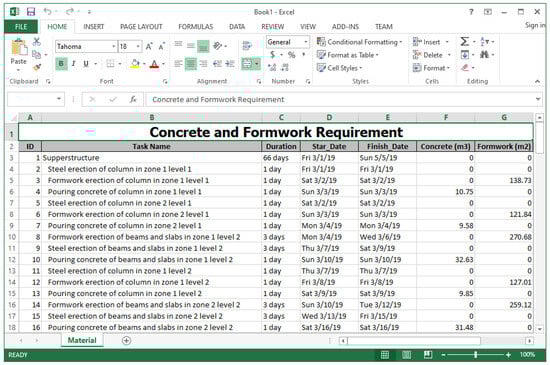 3.5. A Rule for Preparing Schedule Excel File and Calculating Daily Quantity Takeoff