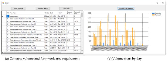 Chicago/Turabian StylePham, Van-Hoan, Po-Han Chen, Quan Nguyen, and Diep-Thuy Duong. 2024. "BIM-Based Automatic Extraction of Daily Concrete and Formwork Requirements for Site Work Planning" Buildings 14, no. 12: 4021. https://doi.org/10.3390/buildings14124021