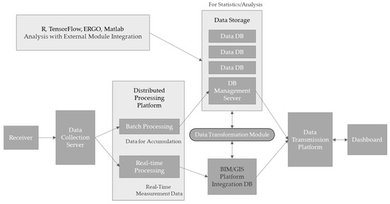 The internal system configuration of the open platform employs a lambda architecture to balance real-time data processing with batch analyses (Figure 3). Apache Spark processes the streaming of sensor data in real-time, whereas batch jobs generate statistical insights that support predictive analysis. This hybrid approach ensures platform responsiveness during emergencies and enhances the preparedness for future scenarios.