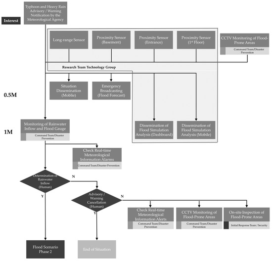 Response diagram according to flood response stages.