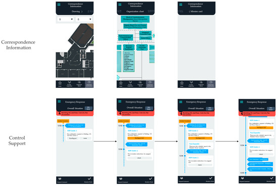 When delivering individual SOPs in emergency situations with time- and procedure-based tasks specific to each user, the progress of each step was recorded and synchronized with the central server, allowing the central manager to issue updated commands through the dashboard as necessary. Figure 14 illustrates the command support flow during an emergency. The central server assesses the real-time sensor data to detect emergencies, thereby triggering the emergency interface of the mobile tool. Field workers receive personalized SOPs and show each step in their responses. After completing each step, the field workers provide feedback indicating whether tasks have been executed, allowing the central server to make informed decisions regarding subsequent actions. SOPs are customized based on the worker’s role and location and are regularly updated to ensure their readiness for a rapid response.