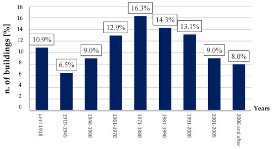- Corrado, V.; Ballarini, I.; Paolo Corgnati, S. Building Typology Brochure—Italy. Fascicolo Sulla Tipologia Edilizia Italiana; Tabula Episcope, Politecnico di Torino—Dipartimento Energia, Gruppo di Ricerca TEBE: Torino, Italy, 2014; ISBN 978-88-8202-065-1. [Google Scholar]