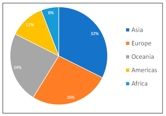 In May 2024, the initial questionnaire was distributed via Qualtrics to 1210 participants. Response rates were carefully monitored, with a follow-up conducted two weeks later to provide participants with sufficient time for completion. Two reminder emails were sent: the first two weeks after the initial invitation, and the second one week later. These efforts resulted in 34 fully completed survey responses over a two-month period, forming the expert study group. Figure 4 and Figure 5 below depict the geographic and professional distribution of participants, highlighting broad regional representation from the Americas, Europe, Asia, Oceania, and Africa. Asia recorded the highest participation, reflecting a strong focus on smart campus initiatives in the region, while Africa had the lowest participation, corresponding to a relatively lower emphasis on smart campus development. This distribution not only illustrates the global reach of the study but also underscores regional variations in the focus and adoption of smart campus concepts.