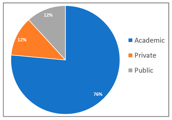 Figure 5 shows participant distribution across three main sectors: academic, private, and public. The academic sector had the highest representation at 76%, followed by the private sector. The public sector had the smallest presence.