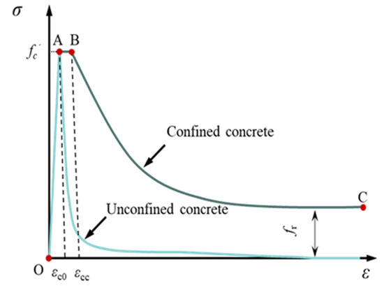 - Samani, A.K.; Attard, M.M. A Stress–Strain Model for Uniaxial and Confined Concrete under Compression. Eng. Struct. 2012, 41, 335–349. [Google Scholar] [CrossRef]
