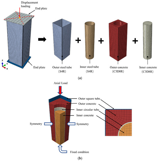 - Ci, J.; Ahmed, M.; Tran, V.-L.; Jia, H.; Chen, S. Axial Compressive Behavior of Circular Concrete-Filled Double Steel Tubular Short Columns. Adv. Struct. Eng. 2022, 25, 259–276. [Google Scholar] [CrossRef]