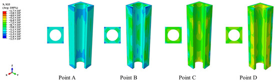 3.2. The Pattern of Longitudinal Stress Distribution Within the Concrete During the Loading Process