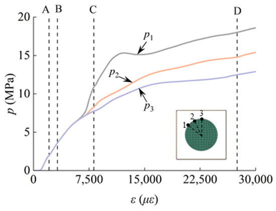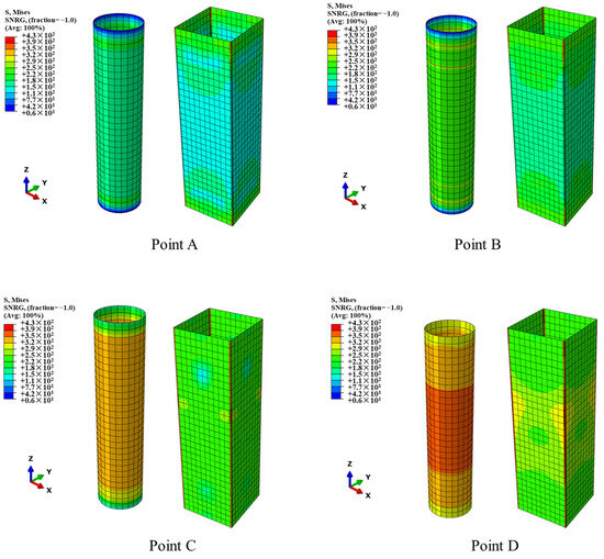 3.4. Interaction Between Concrete and Steel Tube During Loading Process