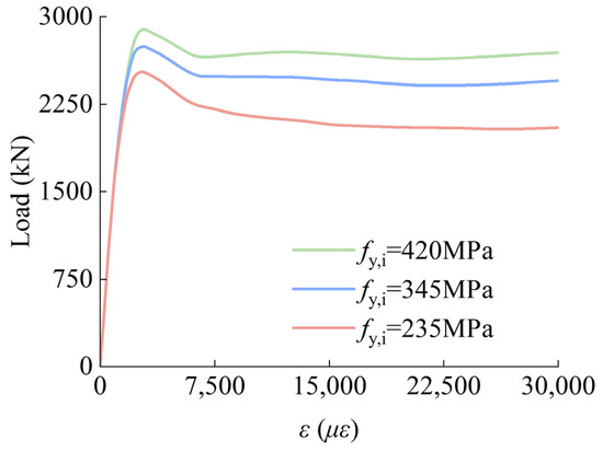 - Liang, H.; Li, W.; Huang, Y.; Lu, Y. Axial Behaviour of CFST Stub Columns Strengthened with Steel Tube and Sandwiched Concrete Jackets. Thin-Walled Struct. 2020, 155, 106942. [Google Scholar] [CrossRef]