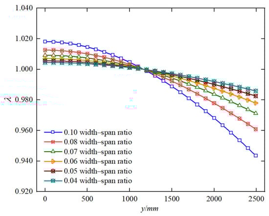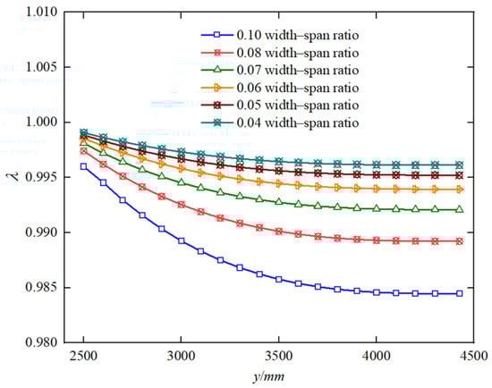 The effect of the width–span ratio on λ at the middle surface of the outer top flange.