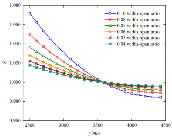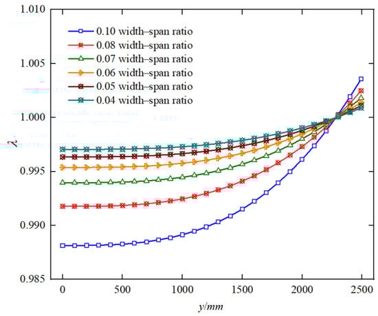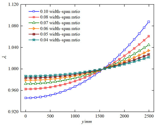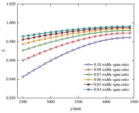 The effect of the width–span ratio on λ at the middle surface of the inner top flange.