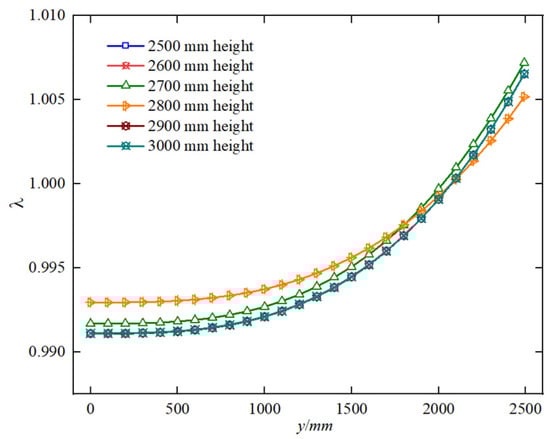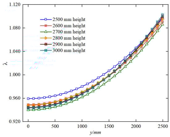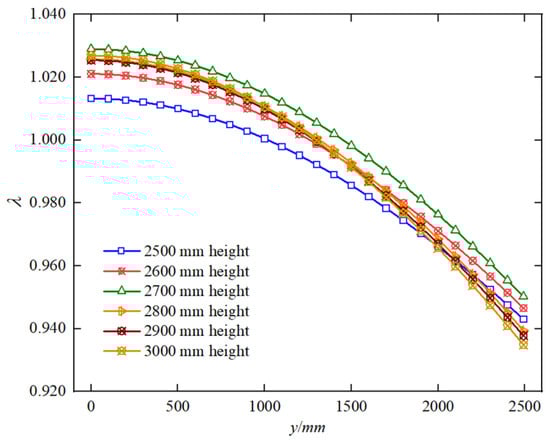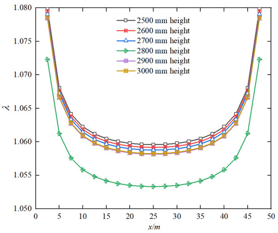 The effect of the height–span ratio on λ on the middle surface of the inner top flange.