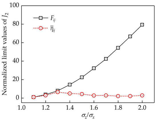 Relation between the stress ratio and the normalized limit value of J2.