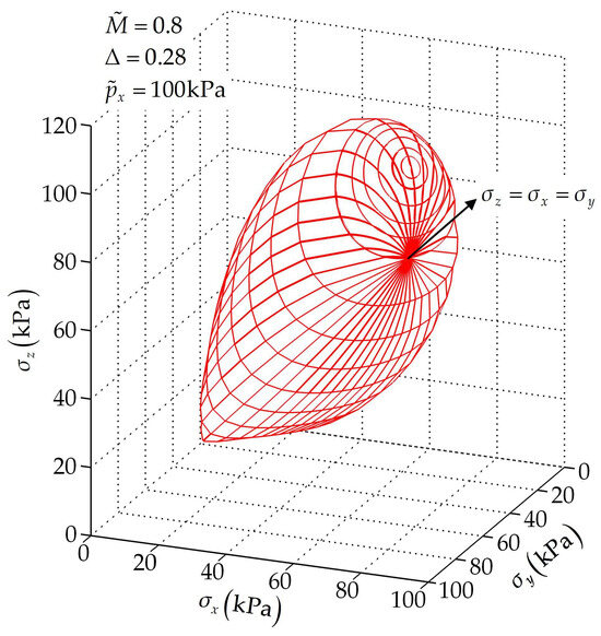 where is the critical state stress ratio in the transformed stress space, and its relation to the original critical state stress ratio is shown later; controls the size of the yield surface. By substituting Equations (2) and (9) into Equation (11), we can obtain an anisotropic yield surface in the real stress space. Characteristics of this yield surface is analyzed in the next section.