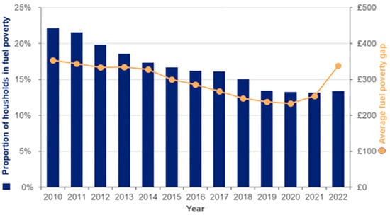 - Department of Business, Energy and Industrial Strategy. Fuel Poverty Statistics. 2021. Available online: https://www.gov.uk/government/collections/fuel-poverty-statistics (accessed on 15 August 2023).