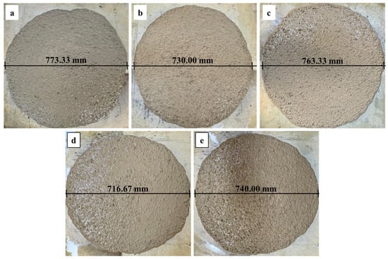 - NBR 15823-2; Concreto Autoadensável—Parte 2: Determinação do Espalhamento do Tempo de Escoamento e do Índice de Estabilidade Visual—Método do Cone de Abrams. Associação Brasileira de Normas Técnicas (ABNT): Rio Janeiro, Brazil, 2017; p. 5.