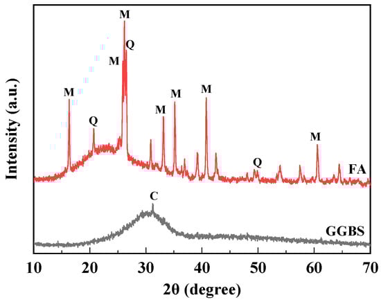 XRD patterns for FA and GGBS (M = mullite; Q = quartz; C = Ca3Al2Si2).