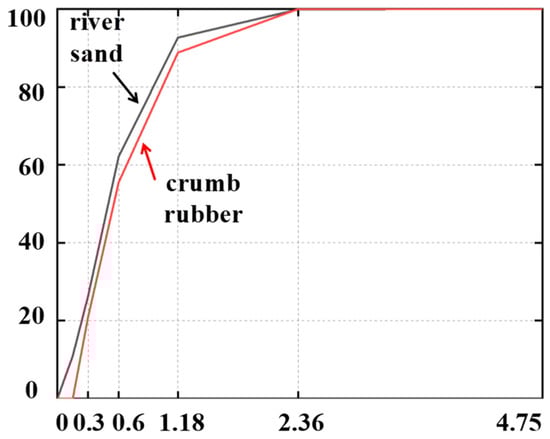 Grading distribution of river sand and crumb rubber.