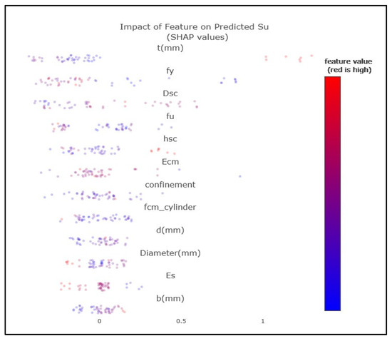 Six metrics were used to evaluate the ML results, and SHapley Additive exPlanations (SHAP) values were applied to each ensemble model and voting for visualization in order to assess the relationships between the features and the target values within the data. Table 5 lists the metrics for the training datasets of the three prediction models.