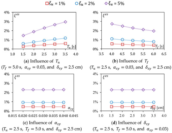 The influences of the structural parameters on the ES model obtained from Section 3.3 are investigated in this section, and the findings are used for detailed discussions on the accuracy verification for the isolation-layer energy dissipation in Section 4.