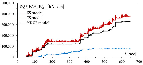 Note that the ES model is assumed to be an initial stiffness-proportional damping model. Hence, based on the Biggs method, the damping ratio of the ES model (Figure 9a) is expressed as [33]:
