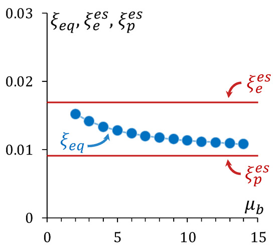 - The damping ratio of the ES model (obtained using the Biggs method [33]) considering .