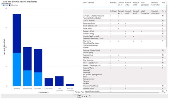 Savolainen et al. [] acknowledged design management’s role in value creation. Depending on the procurement route used and with reference to the RIBA Plan of Work 2020, Design Managers can be substantively involved across Stage 1 ‘Preparation and Briefing’ through to Stage 6 ‘Handover’ of projects. The authors go on to say that depending upon procurement mechanisms, they can be involved in activities as diverse as preparing and monitoring design programmes, undertaking design reviews, coordinating the development of technical designs, and resolving technical and site-based queries. Various researchers, including Jacob and Varghese [] and Sutrisna and Goulding [], have recently reviewed design process interactions and identified concerns around the quality of information flow and information exchanges in the design management processes. Similarly, Uusitalo et al. [,] investigated the roles of design and design management actors in construction project contexts, specifically regarding information flow and solving design quality problems. These researchers ultimately found that project teams should look to enhance ways of communicating and collaborating when managing design. Ultimately, however, much of the knowledge base has only hinted at how better use of project information could be enacted digitally to enhance construction practice. Explicit ways of advancing design management practice through digital means are lacking in the existing knowledge base. To address that gap, this project uses Project Data Analytics to create a prototype dashboard that has the potential to better support design managers in performing their roles.