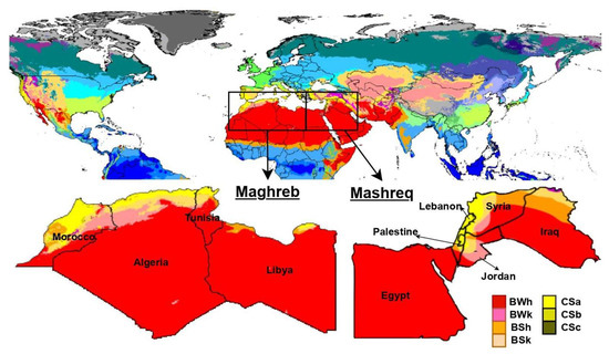 - World Bank Urban Population (% of Total Population). Available online: https://data.worldbank.org/indicator/SP.URB.TOTL.IN.ZS?end=2021&locations=JO-LB-IQ-SY-PS-EG-MA-TN-LY-DZ&start=2010&view=chart&year=2021 (accessed on 1 June 2023).