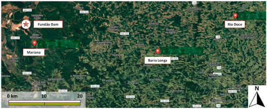 - Hatje, V.; Pedreira, R.M.A.; Rezende, C.E.; Schettini, C.A.F.; Souza, G.C.; Marin, D.C.; Hackspacher, P.C. The environmental impacts of one of the largest tailing dam failures worldwide. Sci. Rep. 2017, 7, 10706. [Google Scholar] [CrossRef]