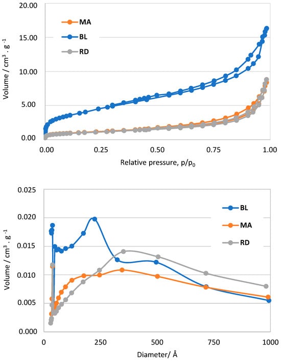 - Thommes, M.; Kaneko, K.; Neimark, A.V.; Olivier, J.P.; Rodriguez-Reinoso, F.; Rouquerol, J.; Sing, K.S.W. Physisorption of gases, with special reference to the evaluation of surface area and pore size distribution (IUPAC Technical Report). Pure Appl. Chem. 2015, 87, 1051. [Google Scholar] [CrossRef]