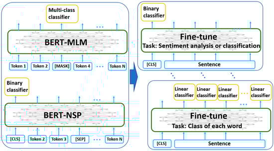 Since the research focus in energy is shifting from single buildings to the district level, a few ML techniques have been developed that seek to understand energy modeling and management at a district level [,]. However, studies employing NLP to mine text data are extremely rare []. One of the reasons is that the fast growth in big data applications and deep learning architectures occurred at the beginning of the 2010s with the significant increase in computing speed. This breakthrough enables the machine to train millions of parameters to create sophisticated and nonlinear relationships that map the input data. However, it was not until the late 2020s that the execution of NLP tasks by unsupervised pre-trained language models started to outperform human ability [,]. By using a huge corpus of input data, these language models are pre-trained to capture the implicit linguistic rules and semantic relationships displayed in human language construction without manually labeling the model output.