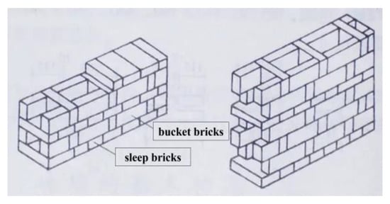 The empty bucket wall is a typical masonry structure, which can save more brick dosage, mortar, and labor than the traditional solid wall and has good thermal insulation and heat preservation properties []. The empty bucket wall structure now widely exists in rural areas of southern townships in China, and the basic properties related to empty bucket walls in different regions are of interest to many engineers and technicians, so an in-depth study of the relevant properties of empty bucket walls is necessary.