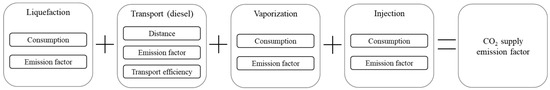 The emissions from the CO2 supply entail the liquefaction, transport, vaporization and injection, as depicted in Figure 3.