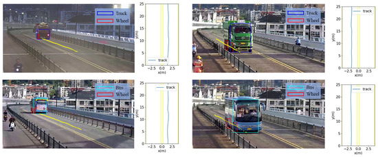 Furthermore, to validate the effectiveness of the algorithm proposed in this paper, a total of 18 vehicles were chosen as calibration and test samples. The trajectory recognition results for some of these vehicles are illustrated in Figure 10.