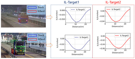 The identification of vehicle spatiotemporal distribution is one of the primary issues that this method aims to address. Traditional B-WIM uses surface-embedded sensors installed at both ends of the bridge or sensors under the bridge [8] to capture the vehicle’s time of passing on and off the bridge. Under the assumption of uniform vehicle speed, these systems calculate the vehicle’s spatiotemporal distribution. However, they are not suitable for complex scenarios such as non-uniform vehicle speed and lane changing. Machine vision technology can overcome the challenges of the above-mentioned methods. Traditional machine vision techniques, employing background subtraction, frame differencing, or optical flow methods, identify moving vehicles from changing pixels. However, these methods are susceptible to interference and struggle with accurate axle positioning and vehicle-type recognition. Machine vision methods based on deep learning can directly recognize and classify vehicles in images, offering more stable and precise identification results. Additionally, they exhibit strong adaptability to environmental changes. By adjusting the annotated targets in the training set, the recognition of different parts of vehicles can be tailored according to task requirements. Currently, the field of object recognition is mainly divided into two-stage detectors, represented by RCNN [9], and one-stage detectors, represented by YOLO [10]. Among them, one-stage detectors have faster recognition speeds and are more suitable for tasks with high real-time requirements. Target detection technology has found extensive applications across various branches of civil engineering, including bolt-loosening detection [11], structural deformation monitoring [12], and more. In the context of identifying the spatiotemporal distribution of vehicles, Xia et al. [13] achieved vehicle trajectory recognition under complex driving conditions. Dan et al. [14], by combining multiple cameras, achieved the spatiotemporal distribution of vehicles across the entire bridge. Additionally, Xu et al. [15] utilized the recognition capabilities of cameras and combined them with electronic toll-collection information to comprehensively track specific vehicles throughout their journeys. This underscores that the recognition of vehicle spatiotemporal distribution based on computer vision has made significant progress in engineering applications.