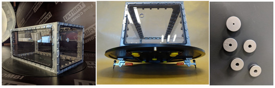 • Contraction component. This unit had dual purposes: (1) accelerating the flow in the testing chamber and (2) providing a uniform flow velocity profile inside the testing chamber. A preliminary design carried out according to [31,32] yielded a simplified shape using 30° inclined planes, selected for its balance between a small deviation in the velocity field in the flow direction (less than 3% deviation from the Bell-Mehta form) and fabrication ease.