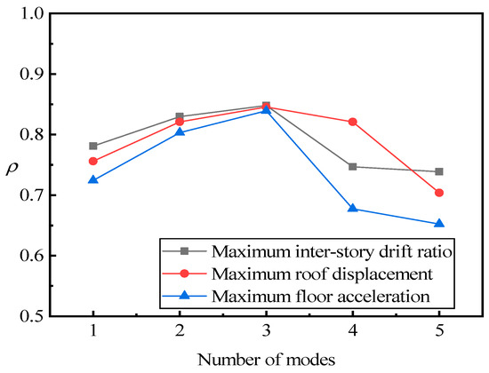 The IM presented in this study is modified by adding the different periods of each mode. Therefore, it is essential to initially determine the ideal number of modes that accurately represent the influence of higher modal vibrations on seismic reactions. It should be emphasized that the inclusion of higher-order modes in the IM may not always be desirable in practical applications of IMs. Consequently, in order to obtain a heightened efficacy of the proposed measure of intensity, it is important to investigate the ideal quantities of modes inside the IM.