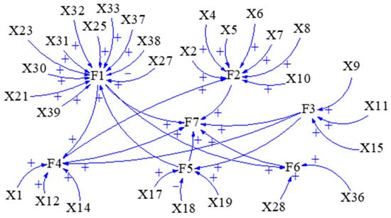 Based on the structural equation model of Figure 3 and Figure 4, the positive and negative correlations between SD models and subsystems which are shown in Table 8, the cause–effect diagram of the SD model is established (as shown in Figure 5), which provides the basis for drawing the stock–flow diagram and determining the model equations and parameters.